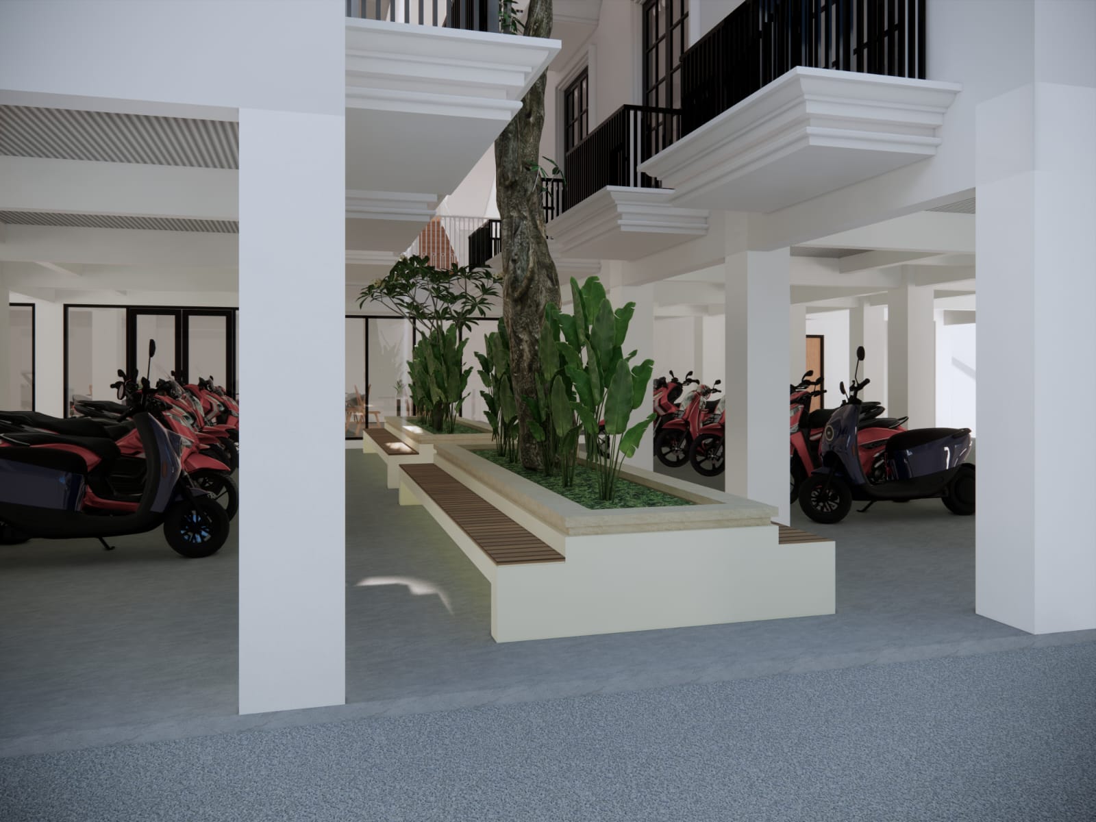 Parkiran nyaman, ruang berkumpul bersama, serta lobby yang mewah dilengkapi material premium pilihan, menjadikan GSV Mansion apartement kost terbaik di kelasnya.